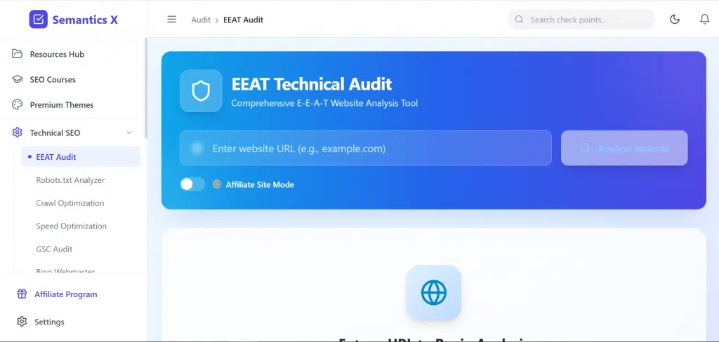 Get a complete, data-driven SEO audit of your website in minutes. Our free SEO audit tool analyzes your site across Technical SEO, On-Page SEO, Off-Page SEO, Keyword Performance, Content Quality, Schema, and GEO SEO.